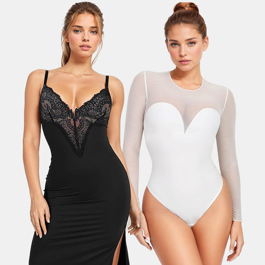 Lace Shapewear Bodycon Maxi Dress & Sheer Mesh Shapewear Thong Bodysuit