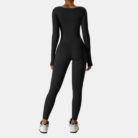 Square Neck Long Sleeve Yoga Jumpsuit