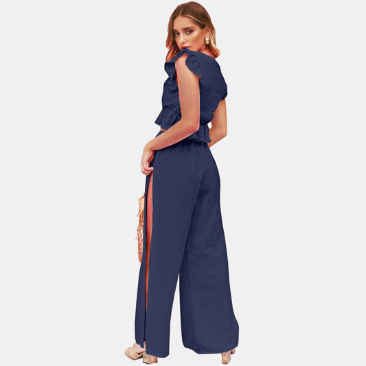Crop Top & Wide Leg Pants 2 Pieces Set