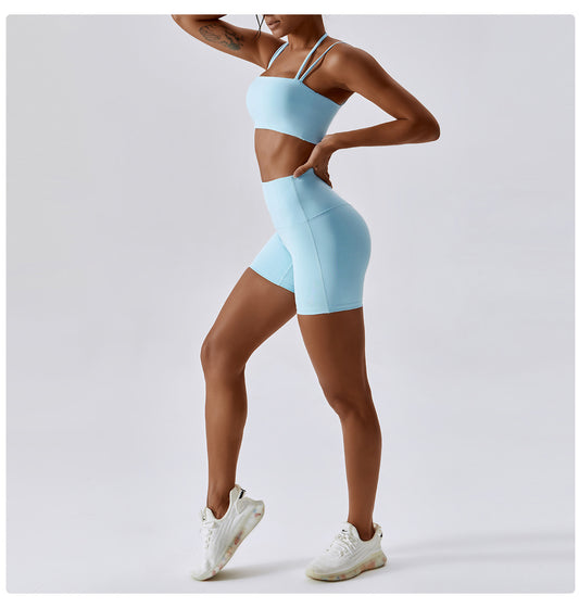 Double Straps Yoga Bra & Shorts Set